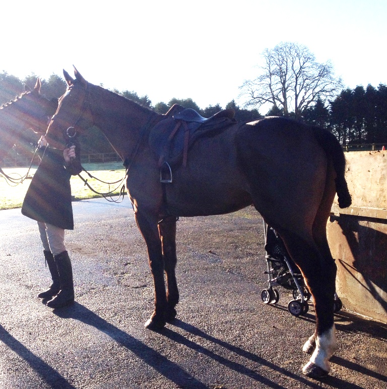 My horse looking fresh after his long trip and early start